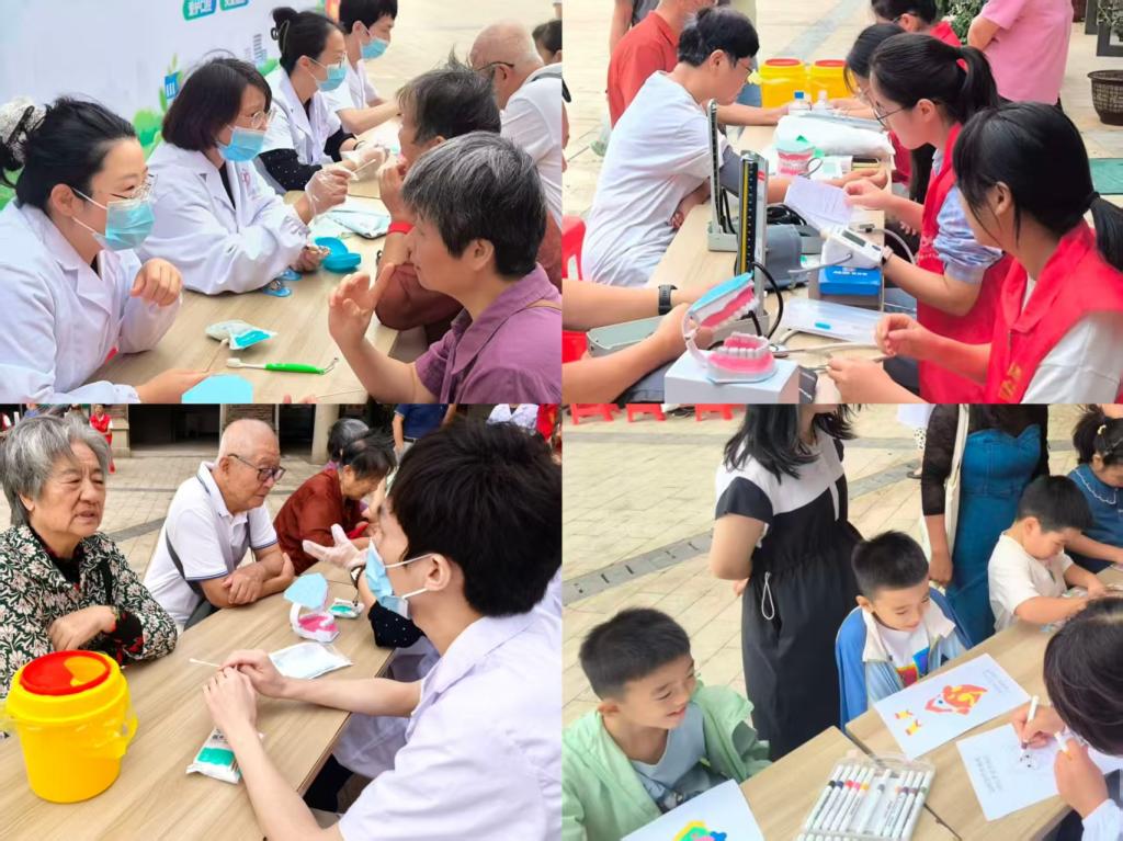 活动现场,口腔医学院的师生为社区居民提供免费口腔检查、龋齿和牙周病筛查,针对不同年龄层给出个性化护牙建议,并为社区居民提供测血压、测血糖等项目。