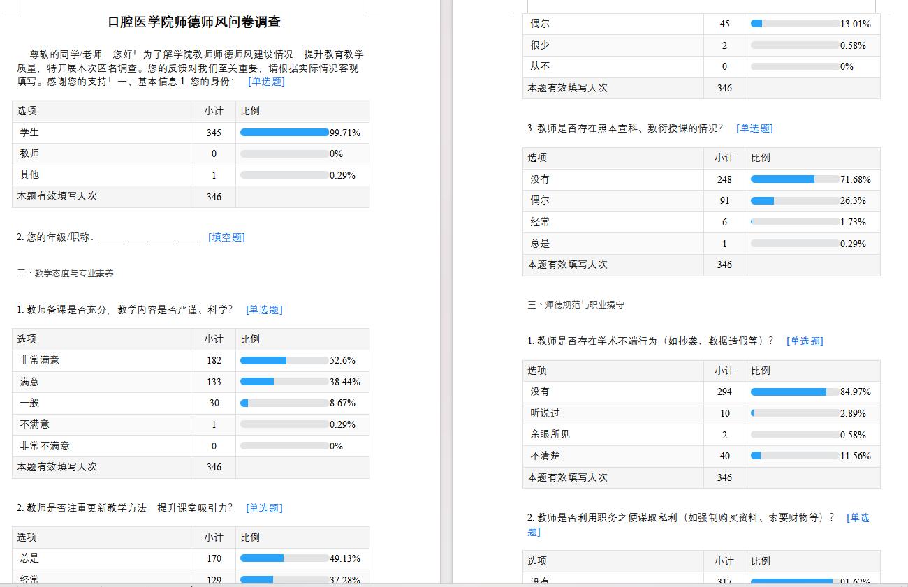 为全面加强师德师风建设,着力营造优良学风,口腔医学院近期开展了一系列扎实有效的工作,通过线上问卷调查与线下学生座谈会相结合的方式,广泛收集师生意见。