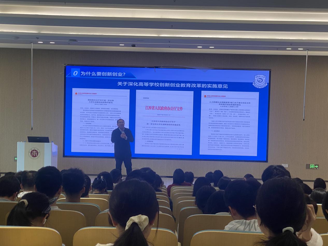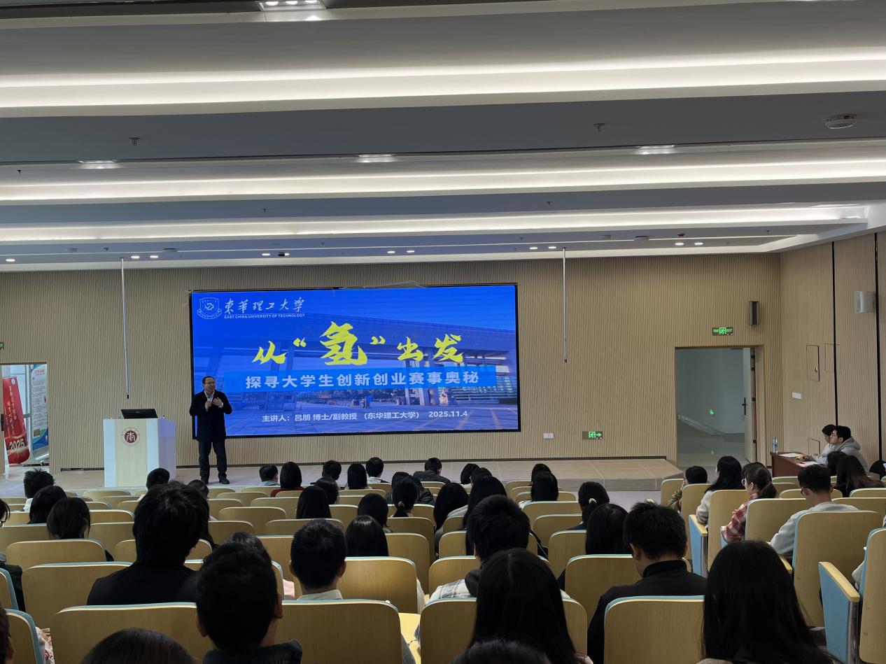本次讲座特邀东华理工大学创新创业教育指导中心主任吕朋副教授担任主讲嘉宾,聚焦创新思维与创业实践进行深度分享。各学院学生代表、校级创新创业导师及相关教师近200人到场聆听。