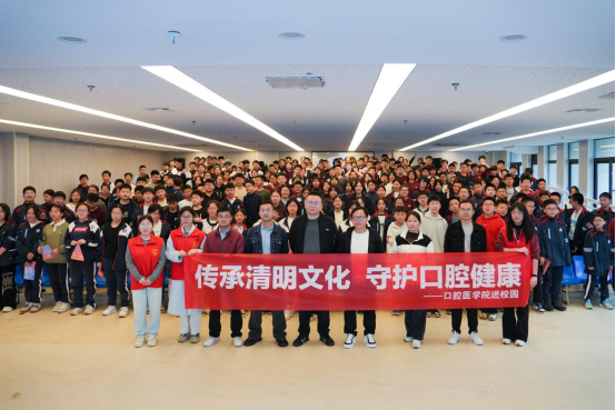 为弘扬中华优秀传统文化,增强青少年口腔健康意识,3月30日,口腔医学院师生志愿者团队走进南昌京师实验学校,开展“传承清明文化,守护口腔健康”主题宣教活动,为初一年级两百余名学生带来一场融合文化浸润与健康科普的春日盛宴。